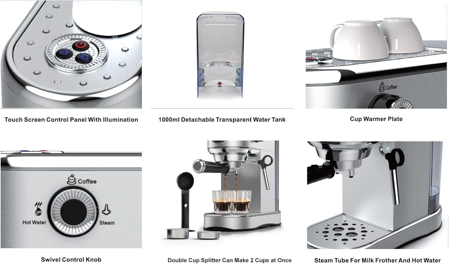 6. Plaque de tasse en acier inoxydable durable : préchauffez vos tasses à café sur la plaque de tasse en acier inoxydable durable, améliorant la stabilité de la température et le goût de votre café.